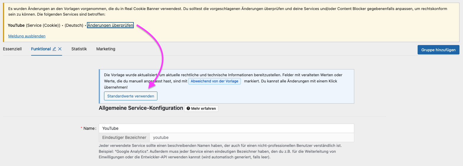 Dienstvorlagen in Real Cookie Banner aktualisieren